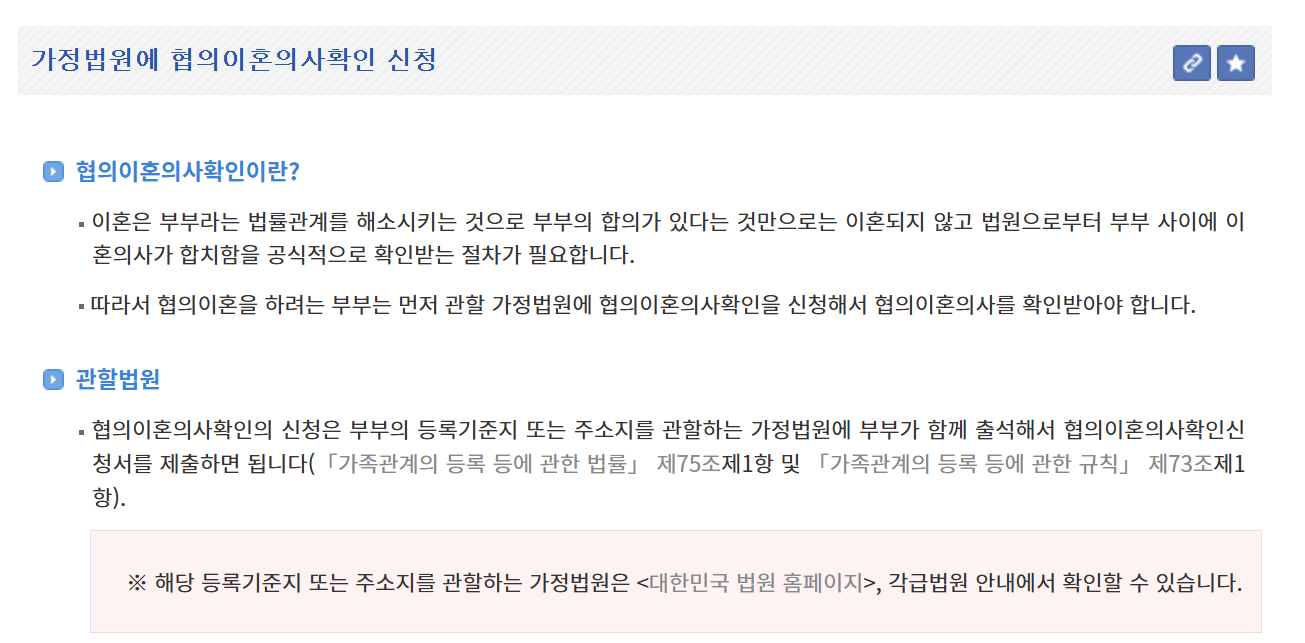 - 대법원 가정법원, 협의이혼 의사 확인 절차 자료