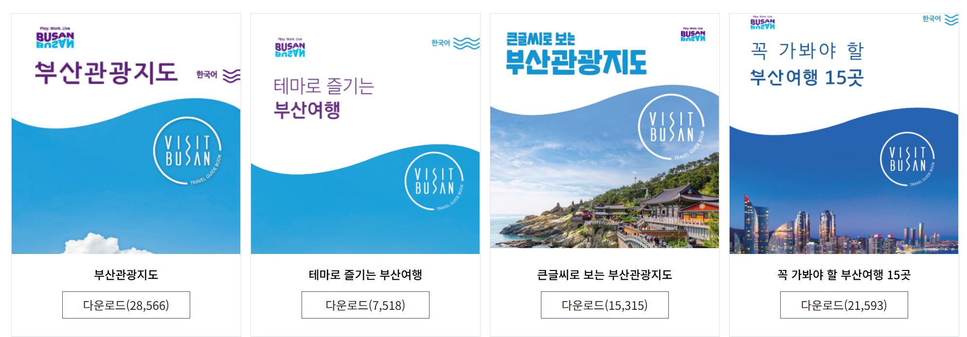 이곳에서는 부산 관광지도, 테마로 즐기는 부산여행, 큰글씨로 보는 부산관광지도, 구군별 관광지도 등 다양한 자료를 제공하고 있습니다. 각 자료는 PDF 형식으로 제공되며, 모바일 기기에서도 쉽게 열어볼 수 있습니다.