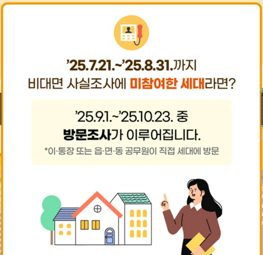 비대면 주민등록 사실조사를 마치지 않은 세대나 조사대상 중점관리 세대의 경우, 별도 안내 후 담당 공무원이 직접 방문하여 확인하게 됩니다.