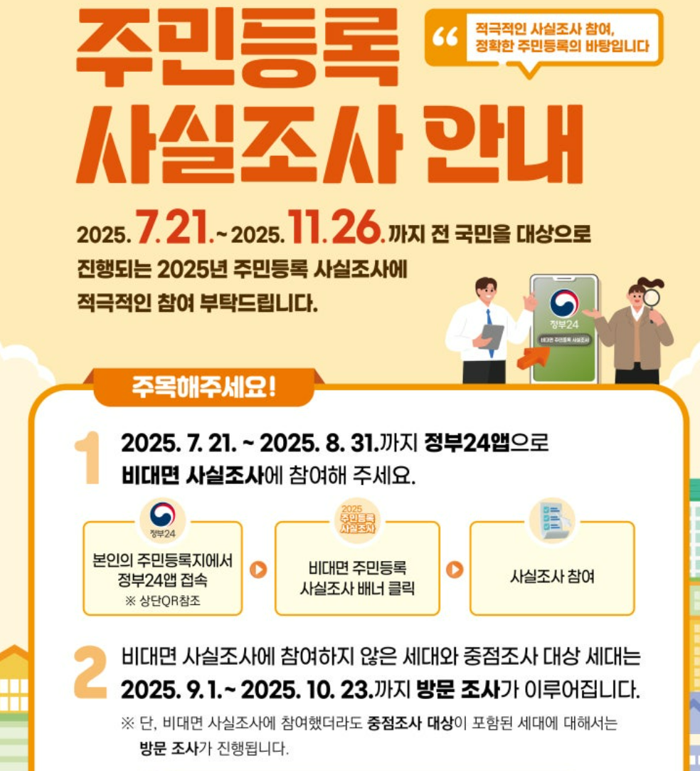 2025년 주민등록 사실조사는 2단계로 나눠 진행됩니다.
