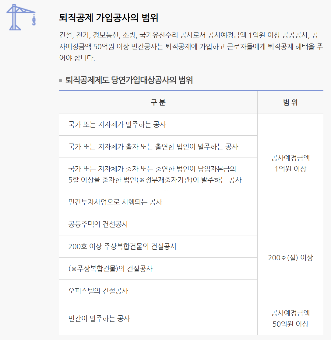 - 일정 규모 이상의 건설공사, 전기공사, 정보통신공사 등에 투입되는 근로자